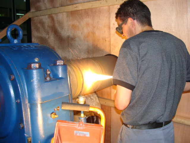 Il permet un apport de matiere ( Métal: acier, Bronze, régule, carbure ..., céramiques, polymères) puis un ré-usinage aux cotes d'origine sur des portées dégradées ( arbres ou alésages ) sans aucune déformation ni modification de structure.
